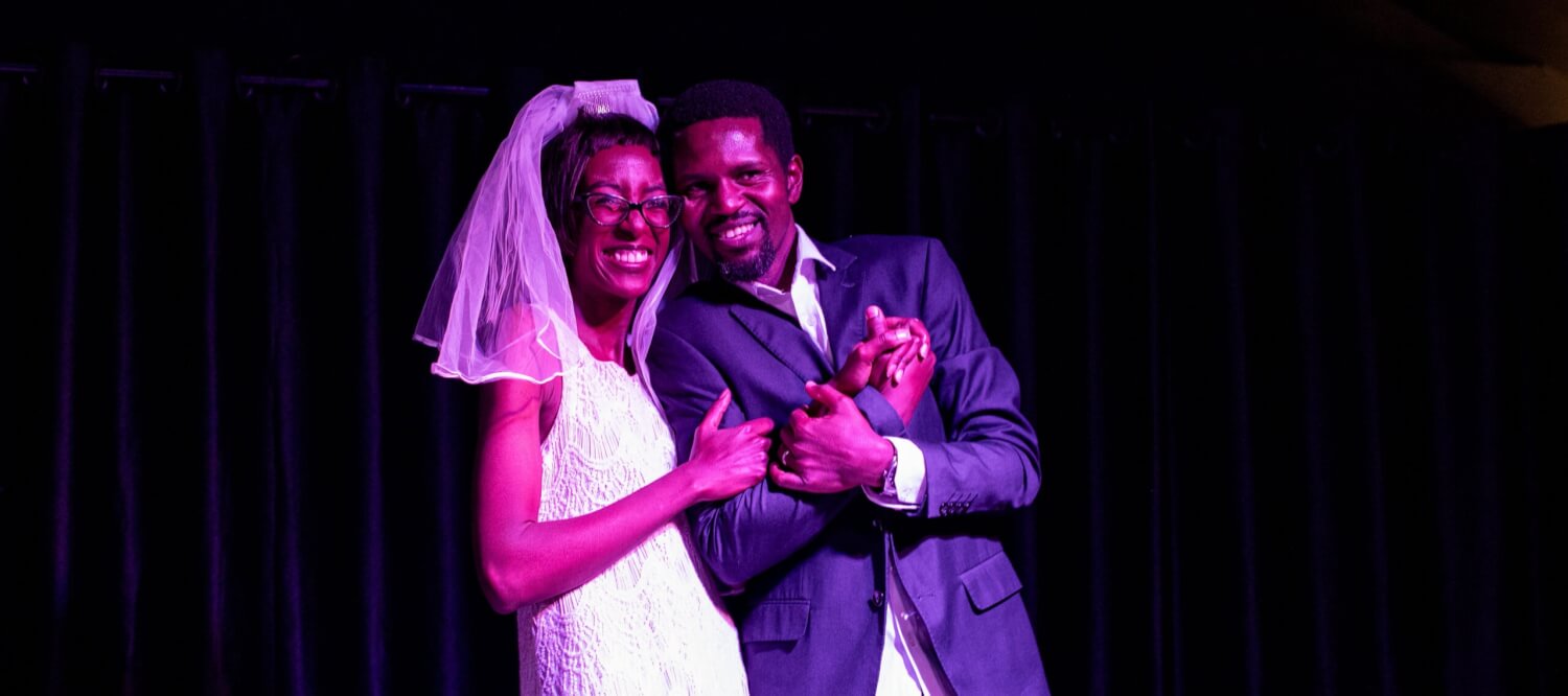 The cast is the real-life couple Justin Mirichii (Shimoni) and Sakina Mirichii, with Benjamin Webi bridging the drama with service through soulful music, poetic soliloquy and direct audience engagement. Both Justin and Sakina display comfort, chemistry and awareness only possible with a real partner. There is an ease in the way they occupy space together that grounds the play’s emotional arc. In the early scenes, their energy crackles with the buoyancy of possibility. Movements are quick, laughter is unrestrained, and their bodies lean instinctively toward each other. As the years pass, that physical vocabulary evolves. The space between them occasionally widens; gestures become more deliberate; affection becomes less flamboyant but no less real.